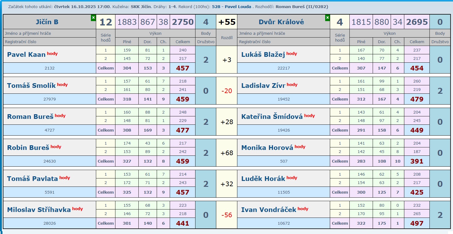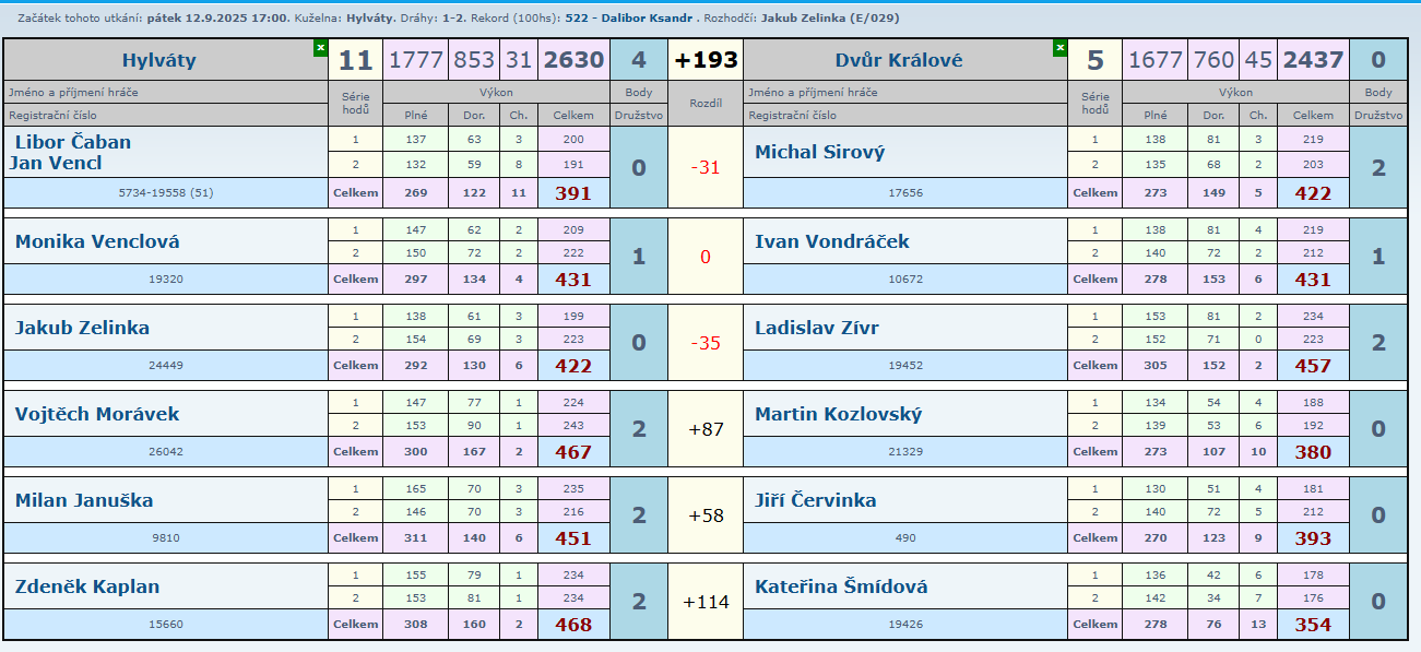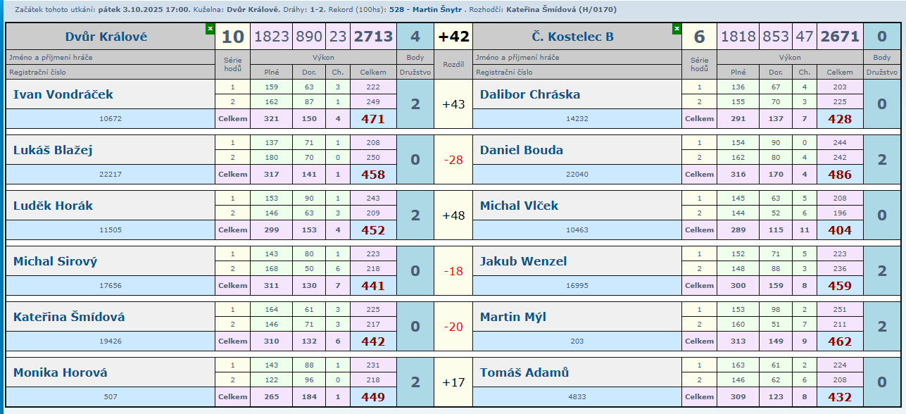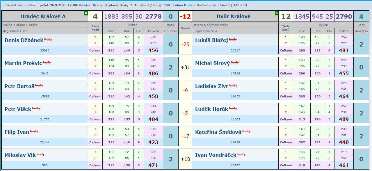 a excelentním výkonem dorážky 184 si svůj náskok před soupeřem udržela. Dokázala tak zvítězit v osobním souboji, který vedl k celkovému vítězství domácího týmu. :) Nádherný zápas.