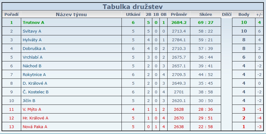 Vč Divize - tabulka družstev po odehrání 6.kola soutěže