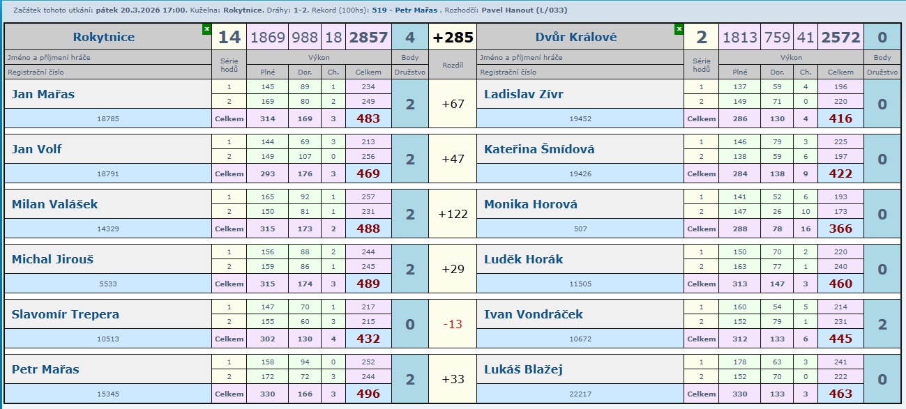 a excelentním výkonem dorážky 184 si svůj náskok před soupeřem udržela. Dokázala tak zvítězit v osobním souboji, který vedl k celkovému vítězství domácího týmu. :) Nádherný zápas.