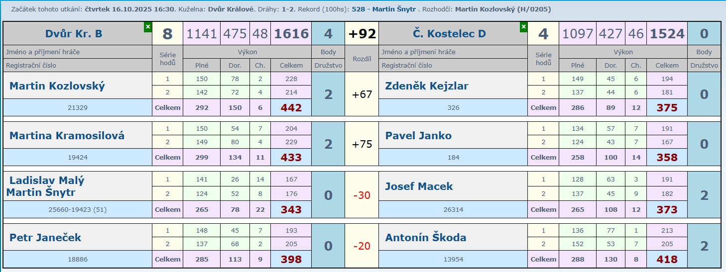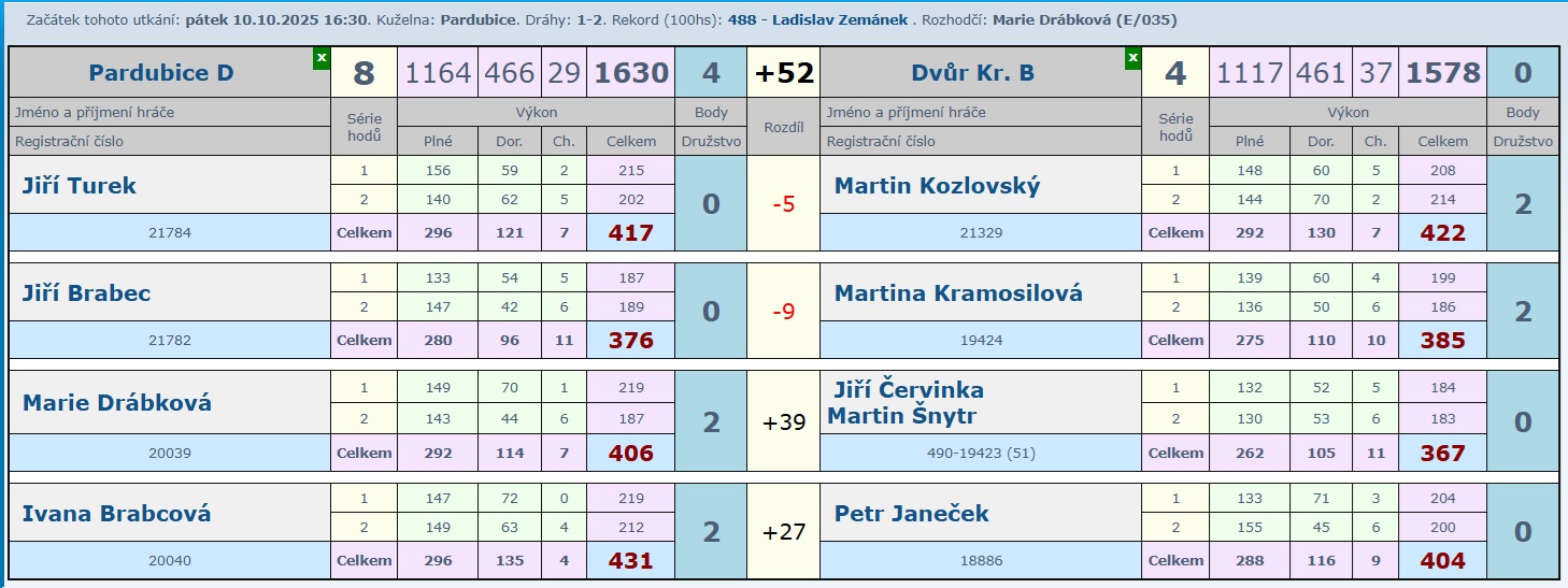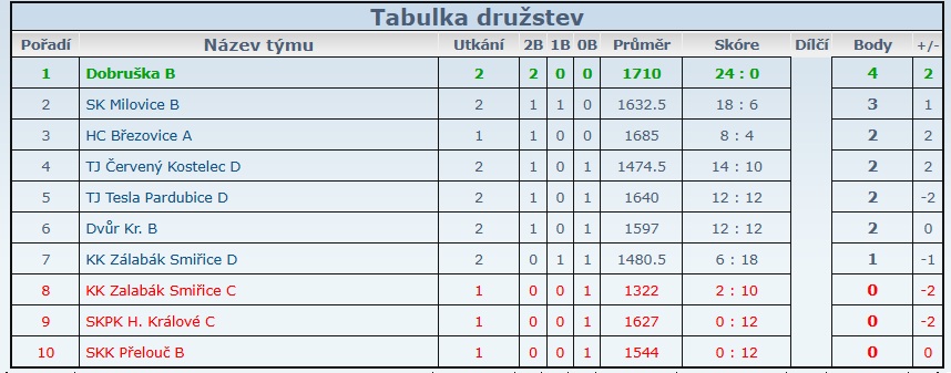 Vč soutěž skupina B - tabulka družstev po odehrání 2.kola soutěže