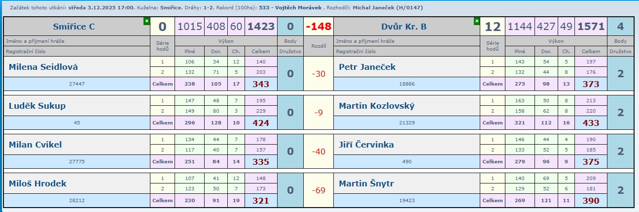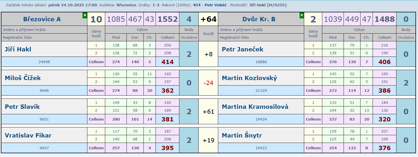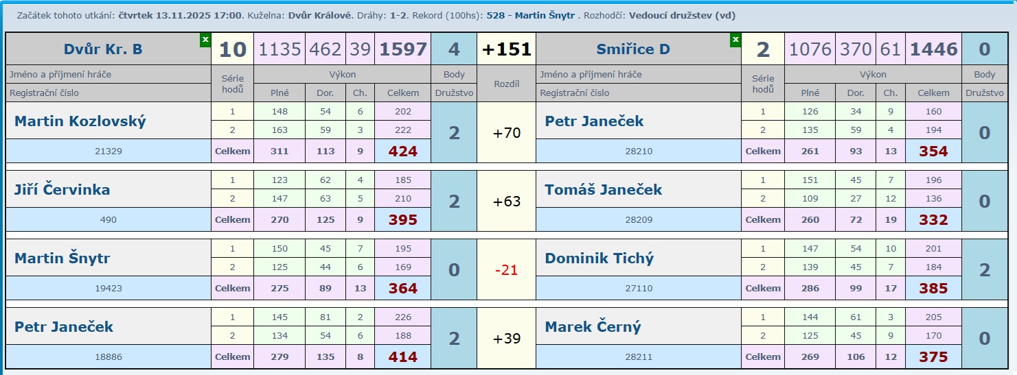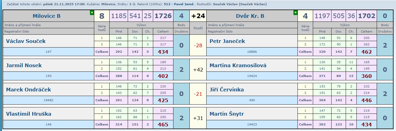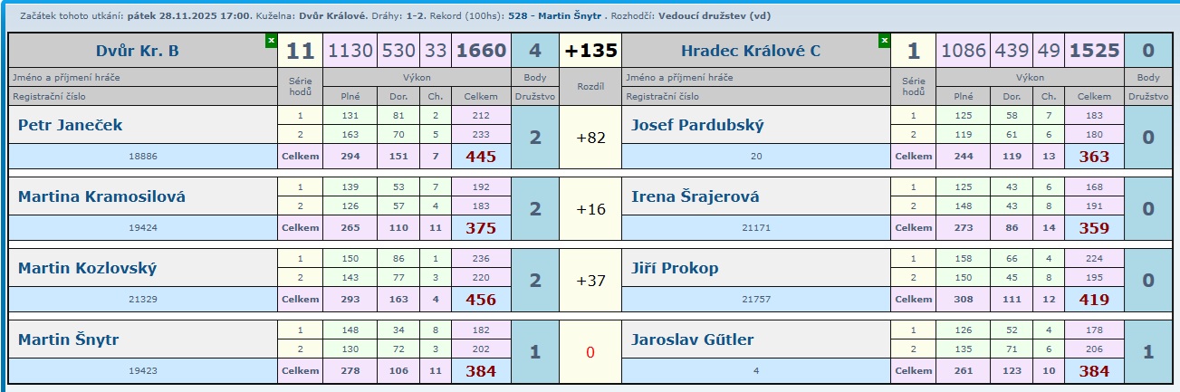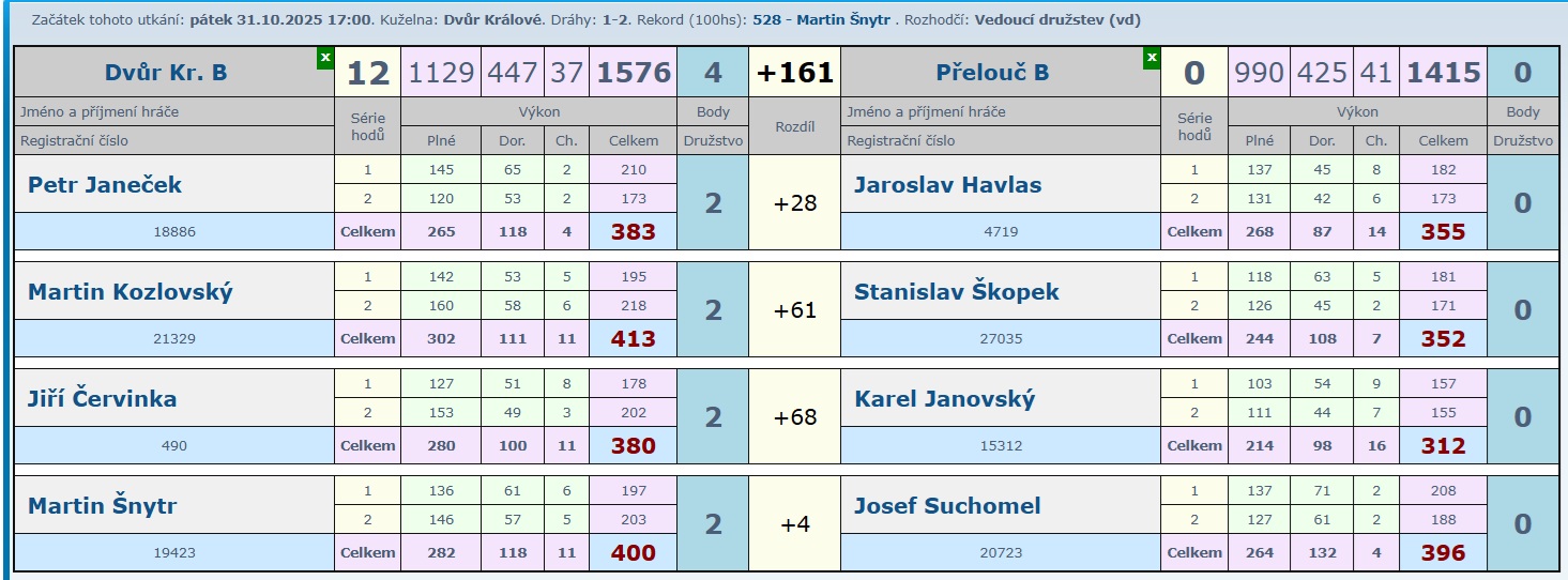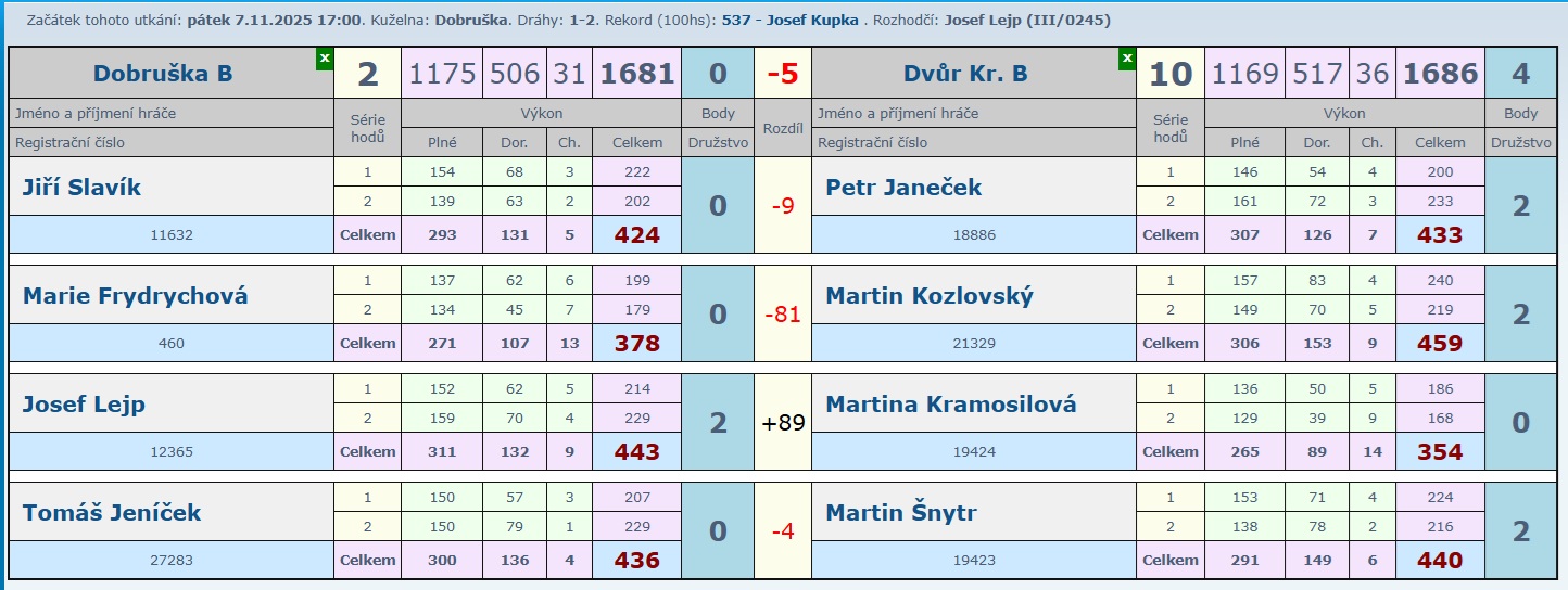 Určitě krásný zápas, kde nikdo z domácích neprohrál a tak družstvo B přidalo další zasloužené 2 body.