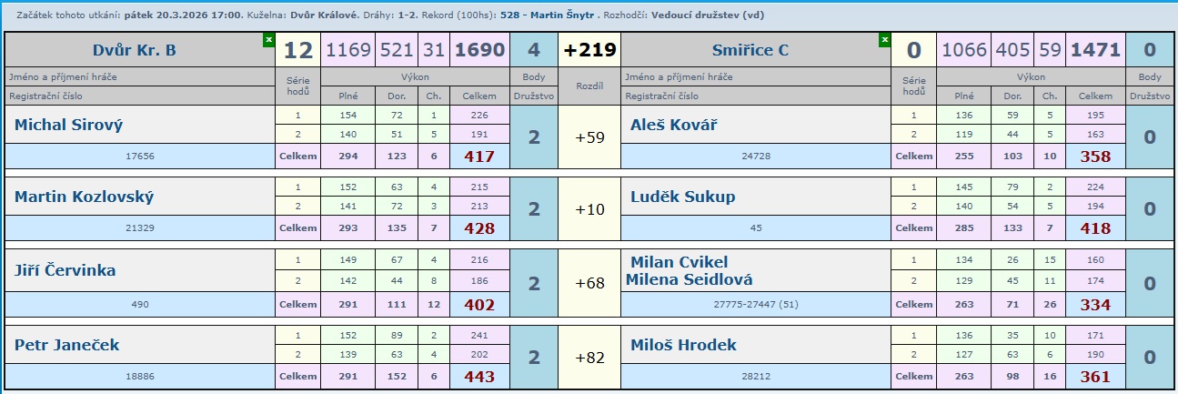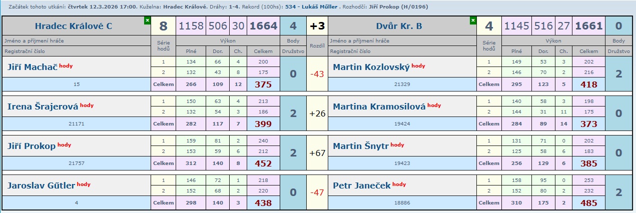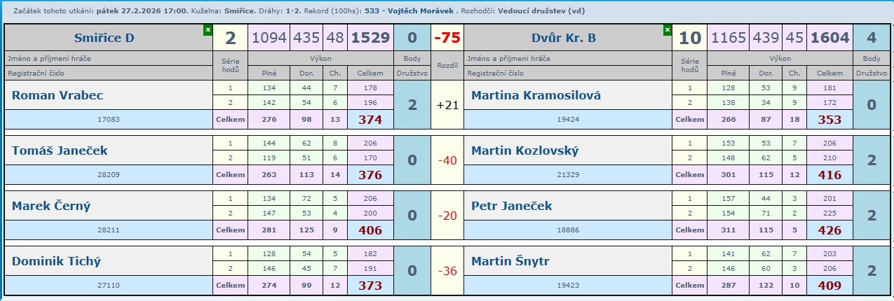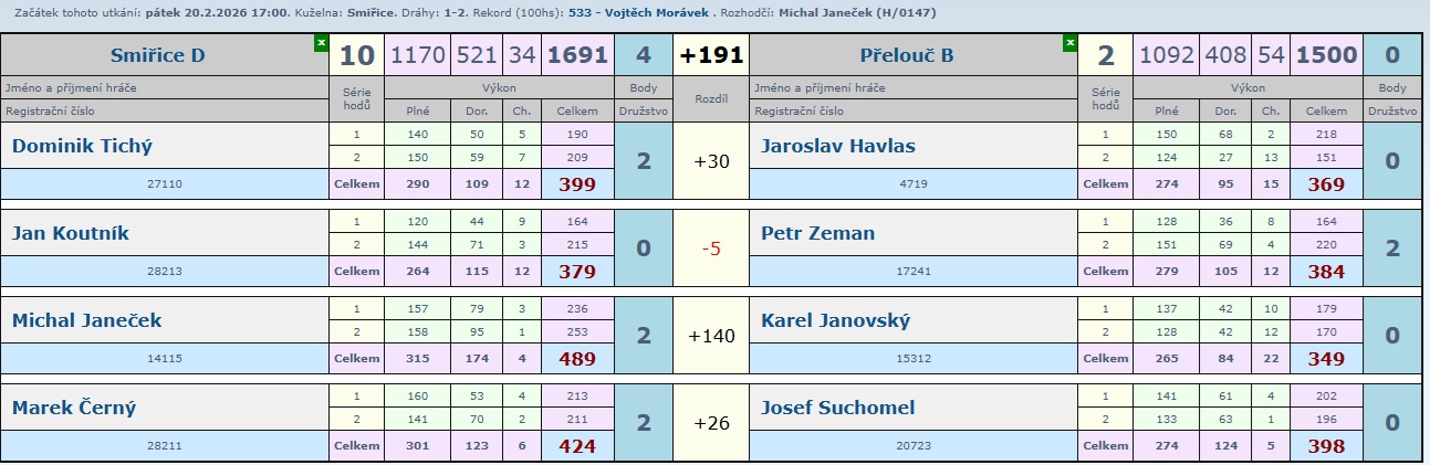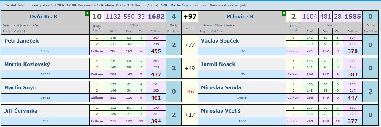 Určitě krásný zápas, kde nikdo z domácích neprohrál a tak družstvo B přidalo další zasloužené 2 body.