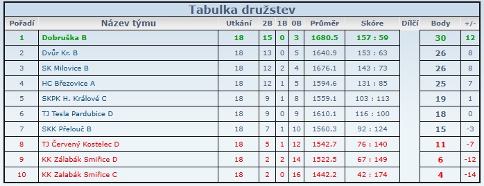 Vč soutěž skupina B - konečná tabulka po odehrání soutěže